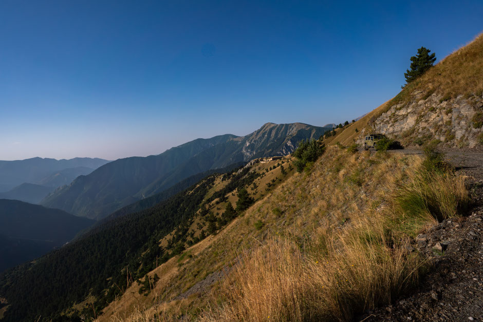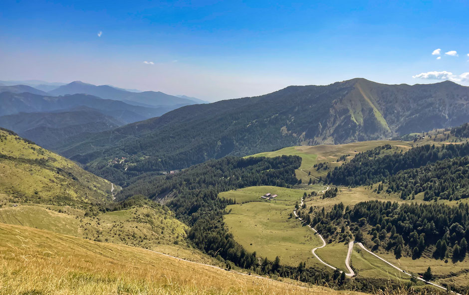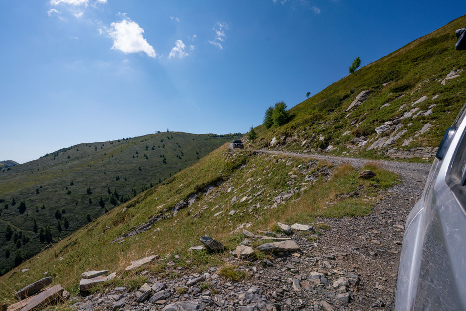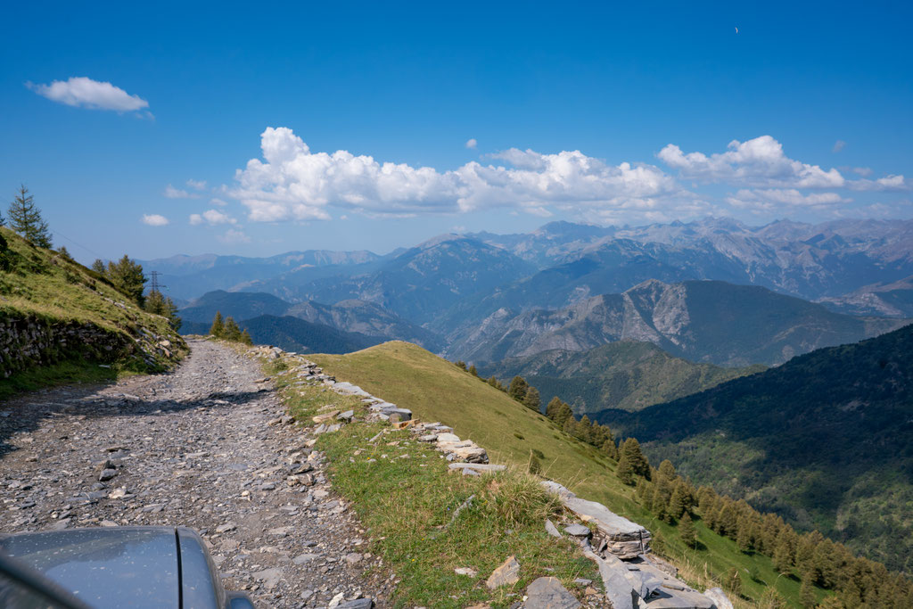 Une fois que l'on passe la deuxième cabanaira, plusieurs possibilitées s'offrent à nous: rejoindre l'Italie par l'asphalte, ou continuer sur la Via del Sale, en passant par le Passo Tanarello et le Passo Di Collardente pour rejoindre la Brigue, toujours par la piste, et tu t'en doutes, on choisis l'option numéro 2! histoire de prolonger le plaisir!.