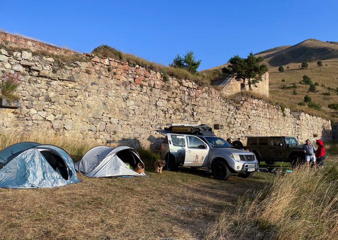 Nous passons dans le Fort central de Tende, qui est blindé, il y'a foule, et franchement on est heureux d'avoir bivouaqué à l'extérieur, car dormir à l'intérieur même d'un lieu historique, c'est déjà moyen, mais en plus entourés de monde, ce n'est pas notre vision du bivouac...