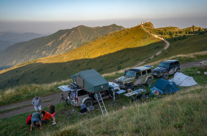 On déjeune face à la vallée, en regardant les marmottes, le soleil qui offre de belles lumières matinales, en appréciant le calme et la sérénité, nos amis on adoré l'expérience du bivouac, et après avoir connu les galères avec la pluie, c'est avec ce deuxième bivouac, qu'ils goutent pleinement à ce qui fait notre passion du road trip en 4x4 aménagé, le réveil en pleine nature, avec chaques jours, un jardin différent, et je crois bien que ce n'est qu'un début pour eux!...