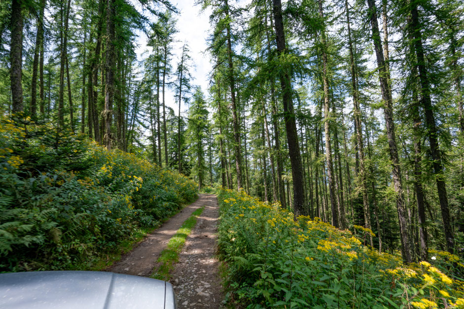 Nous faisons une pause repas en bas de ce col, puis, la piste se finis en sous bois, beaucoup plus tranquille, toujours en descente et avec quelques virages, mais c'est franchement une promenade de santé, comparé au col que l'on vient de passer, et la piste d'hier, le paysage quant à lui, est toujours aussi plaisant.